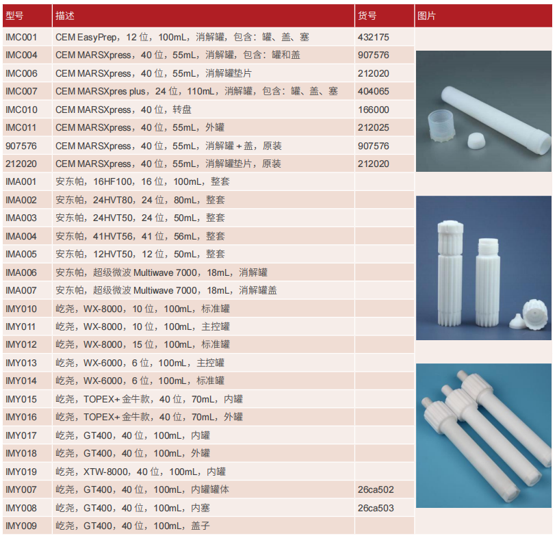 为了满足更多客户的需求,莱伯帕兹在完善的微波消解产品研发、制造技术的基础上开发了多种不同类型的微波消解配件和耗材,以满足不同型号仪器,不同应用场景的需求。