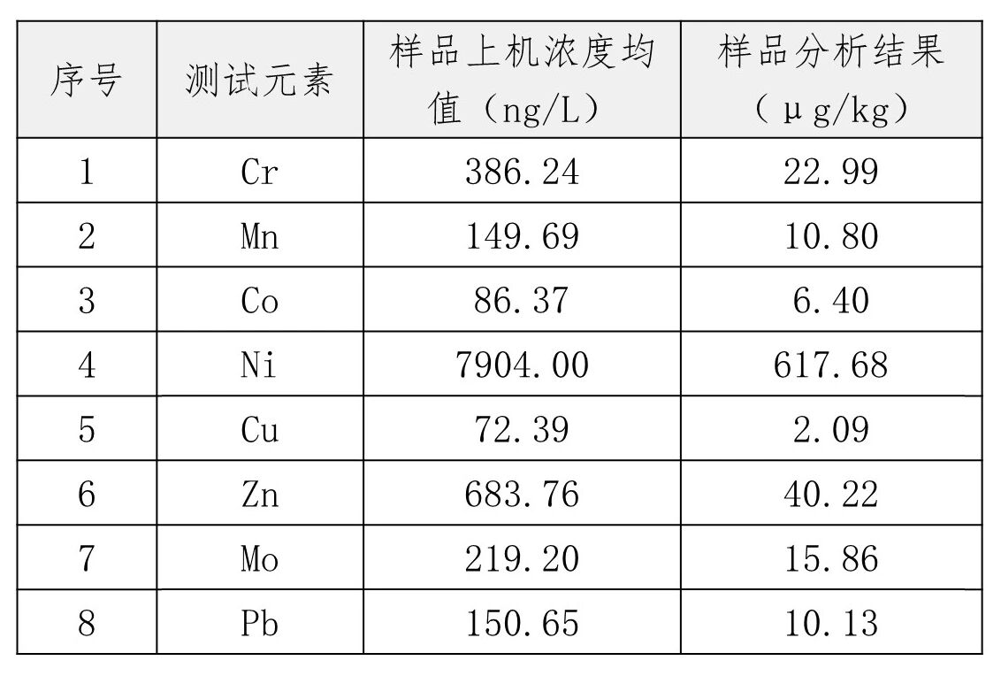 《碳微米管导电浆料中Fe、Cu、Zn、Ni、Co等磁体杂物及可阴离子型少量要素分量的分析》