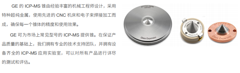 GE 的 ICP-MS 锥由经验充沛充沛的设备工程建筑师设计,主要包括特总超纯铝合金,选用较为先进的 CNC 设备和手机束氩弧焊生产而成,加强组织领导每个锥体的精密度较和选用成效。